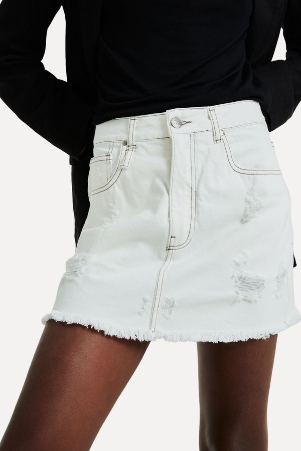 A Saia Sarja da Reversa é perfeita para compor looks despojados e cheios de estilo. Com modelagem de saia jeans curta e cintura alta, ela valoriza a silhueta feminina. O tecido de sarja garante conforto e durabilidade, enquanto a cor offwhite traz um toque de elegância. Versátil, essa saia pode ser usada com tops e sobreposições, como camisas ou t-shirts, proporcionando combinações incríveis para diversas ocasiões. Aposte nessa peça-chave para arrasar no visual! A modelo tem 1,78 de altura, 83 de busto e veste 36. Comprando esta peça, você viabiliza cinco pratos de comida através do nosso Programa 1P5P. Produto produzido eticamente no Brasil.