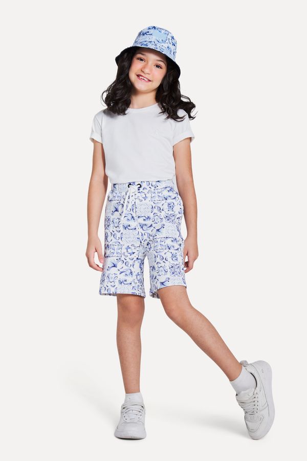 Short runner infantil da Reserva Mini para meninas. Modelo em moletom com estampa exclusiva de azulejos, a cara do verao! Cos de moletom com elastico embutido para o ajuste. Assinatura com patch emborrachado de pica-pau, exclusivo da Reserva