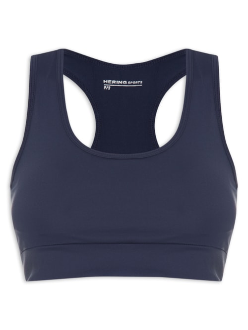 Top Liso - Azul Top Liso, Hering Sports.O top azul marinho é confeccionado em malha de poliamida. A peça possui decote frontal U e posterior nadador, alças finas, cavas regulares, forro, bojo removível, logo da marca estampado em cor contrastante na parte posterior, comprimento cropped* e shape justo.- Modelagem regular, sugerimos o tamanho padrão.- Lavar à mão.Composição: 90% Poliamida e 10% ElastanoCor: Azul MarinhoMarca: Hering Sports*Cropped: comprimento mais curto.