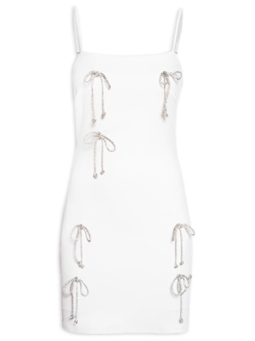 Ir Para LojaVestido Curto Com Laços - Branco Vestido Curto Com Laços, My Favorite Things.O vestido branco é confeccionado em malha de média elasticidade. A peça justa ao corpo possui decote reto, alças finas reguláveis, pences frontais, aplicações frontais de laços com detalhe de hot fix, tag metálica da marca aplicada na parte posterior, forro, comprimento curto e fechamento posterior por zíper invisível.Especificações & Cuidados:Lavar à mãoComposição: 61% Viscose, 35% Poliamida e 4% ElastanoCor: BrancoMarca: My Favorite Things