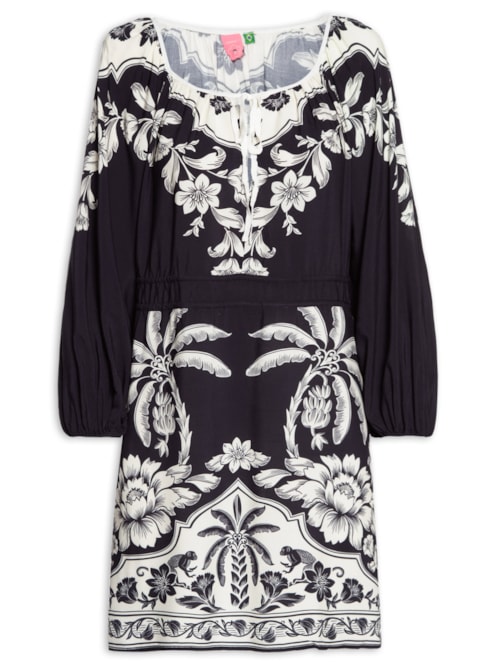 Vestido Curto Indra - Off White Vestido Curto Indra, Farm.O vestido off white é confeccionado em tecido leve com alta elasticidade. A peça justa no busto e solta no comprimento possui modelo tomara que caia, decote reto, tiras alongadas aplicadas na parte interna do busto para amarração superior, estampa floral em cores contrastantes e comprimento curto.Especificações & Cuidados:Lavar na máquina.Composição: 100% ViscoseCor: Off WhiteMarca: Farm
