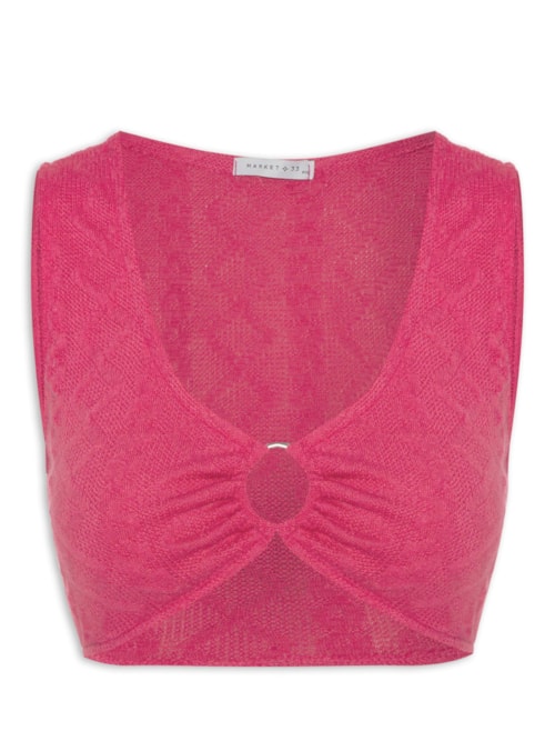 Top Cropped Malha Tricot Aviamento Metal - Rosa